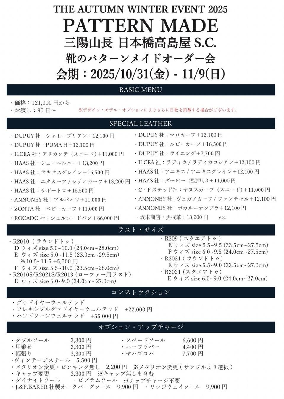 【日本橋髙島屋S.C.店】10/31(金)〜11/9(日)秋のパターンメイド会開催