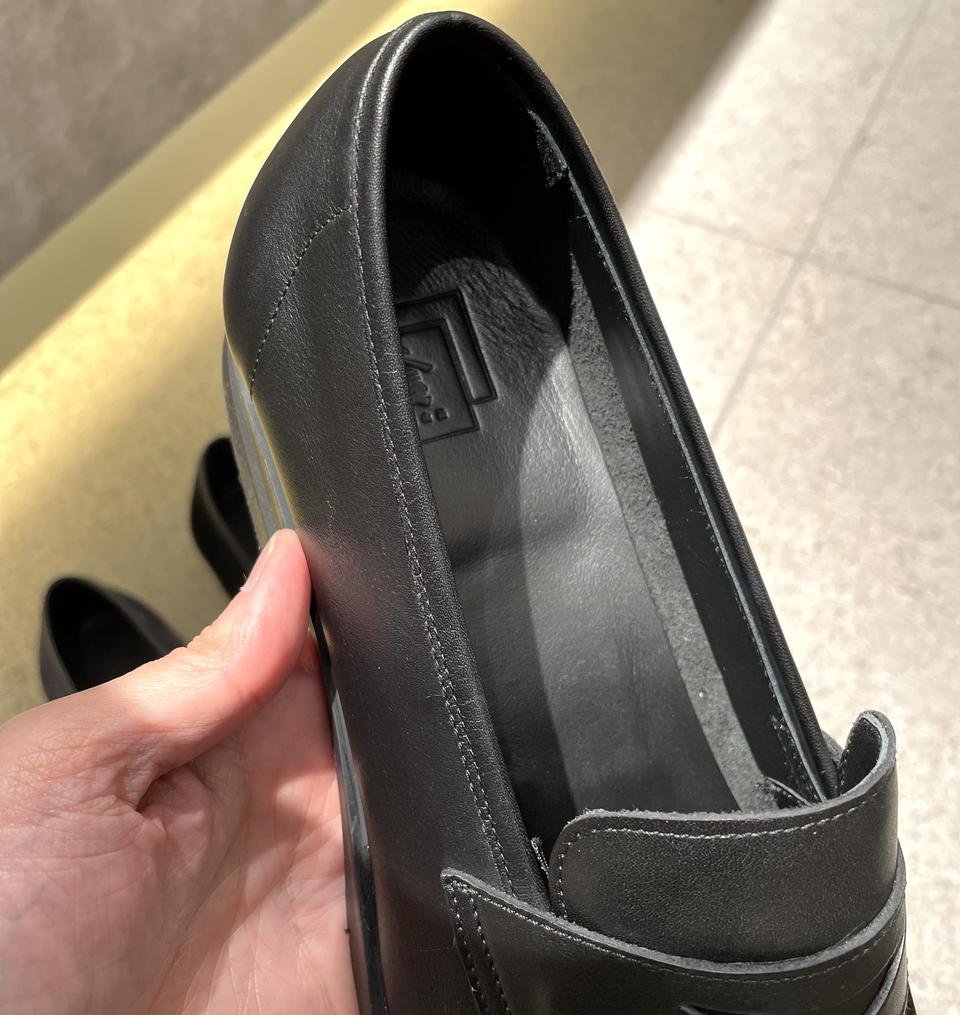 どちらにも、つま先と踵にはしっかりと芯材で補強してあるため足との一体感も実現しております。