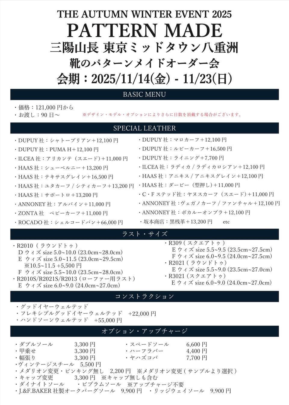 八重洲店のオーダー会が始まります!恒例になりましたが、首都圏では今期も最後の機会です。どうぞお見逃しなく!