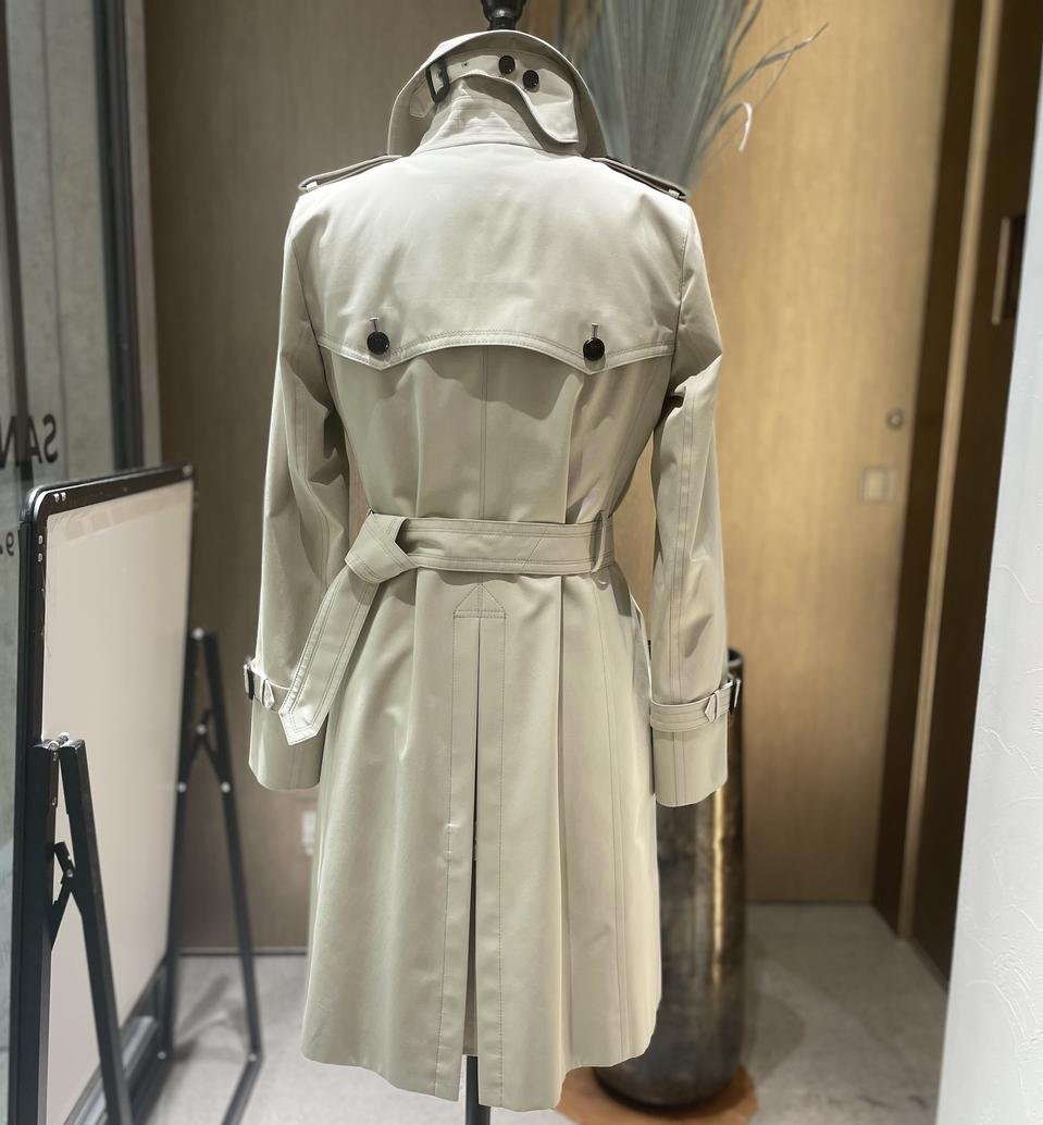 こちらのスタンダード・トレンチは、レディースのパターンオーダー。上品な同色の色味を合わせた大人コートで、既製品の#45ベージュの色味よりワントーン薄めです。勿論メンズコートに採用しても素敵ですね。特にスプリングシーズンにオススメの配色ですね。参考になります。