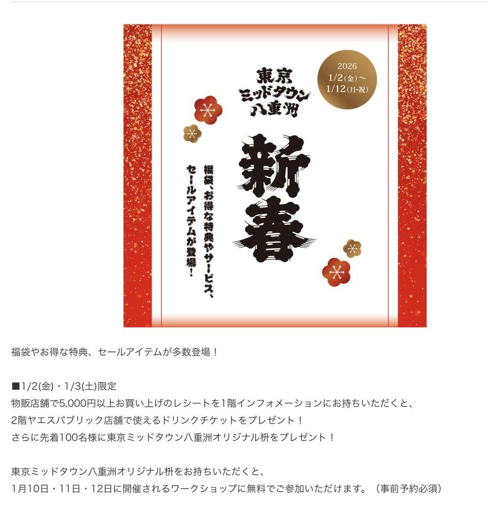 【東京ミッドタウン八重洲店】新年のご挨拶とクリアランスのお知らせ