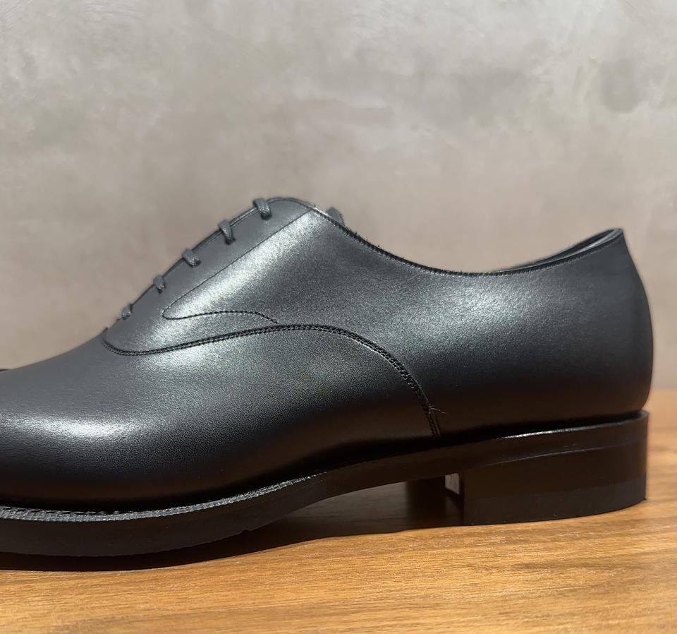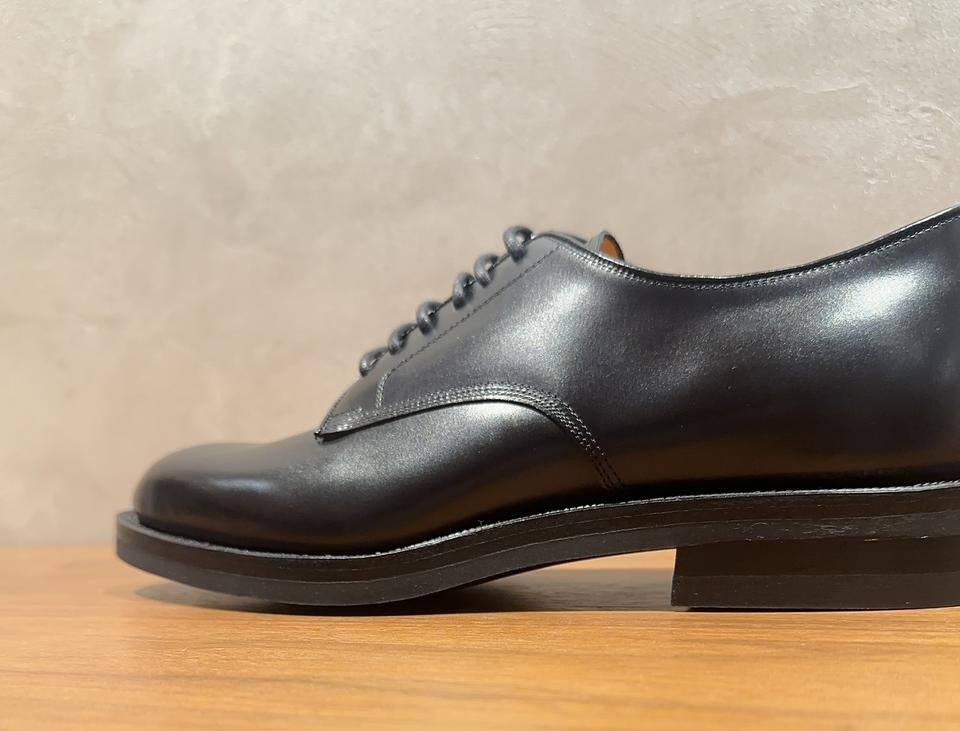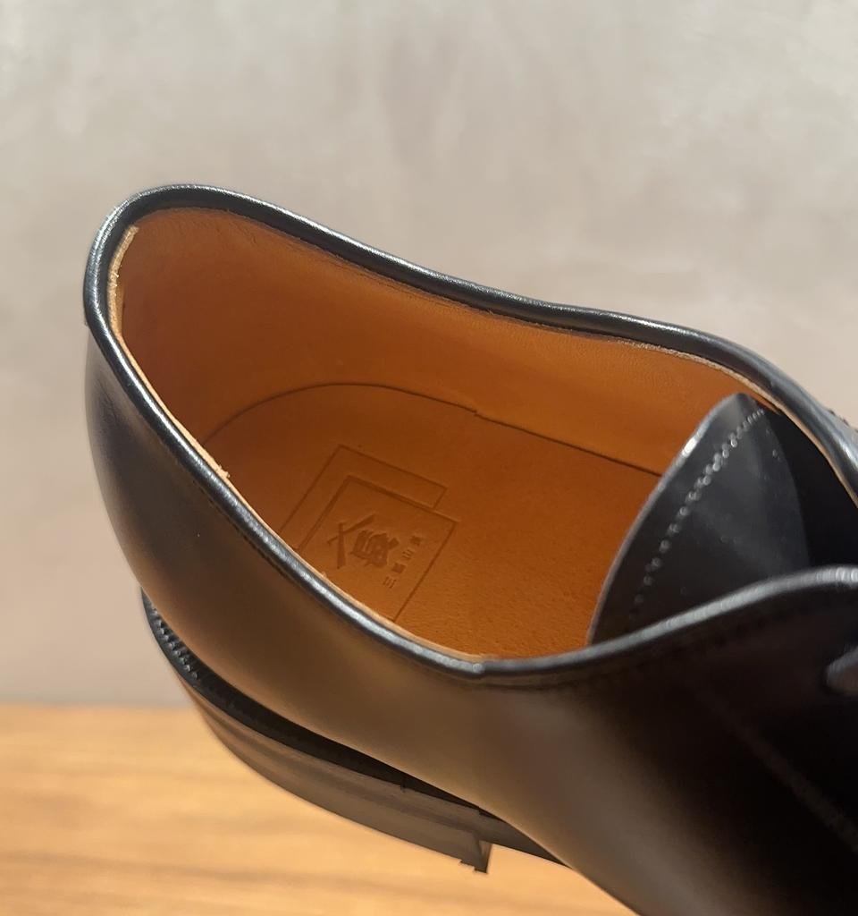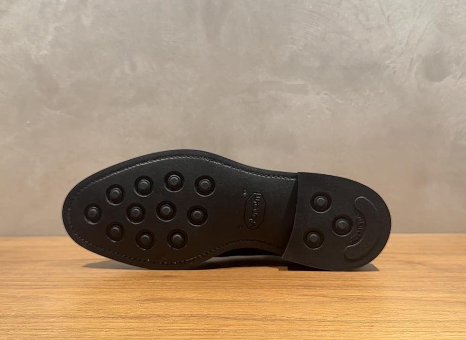 アッパーに使用したフランスカーフのプーマエイチは、大変キメが細かく、革靴がお好きな方が雨の日に履く革靴としても、大変満足度が高い仕様に仕上がっていると思います。